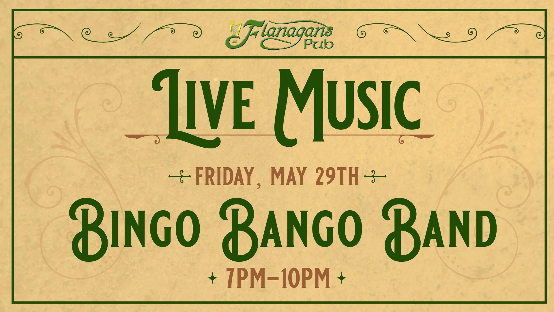 End the month on a high note with Bingo Bango Band at Flanagan’s. Stop in for drinks, dinner, and live music to kick off the weekend.