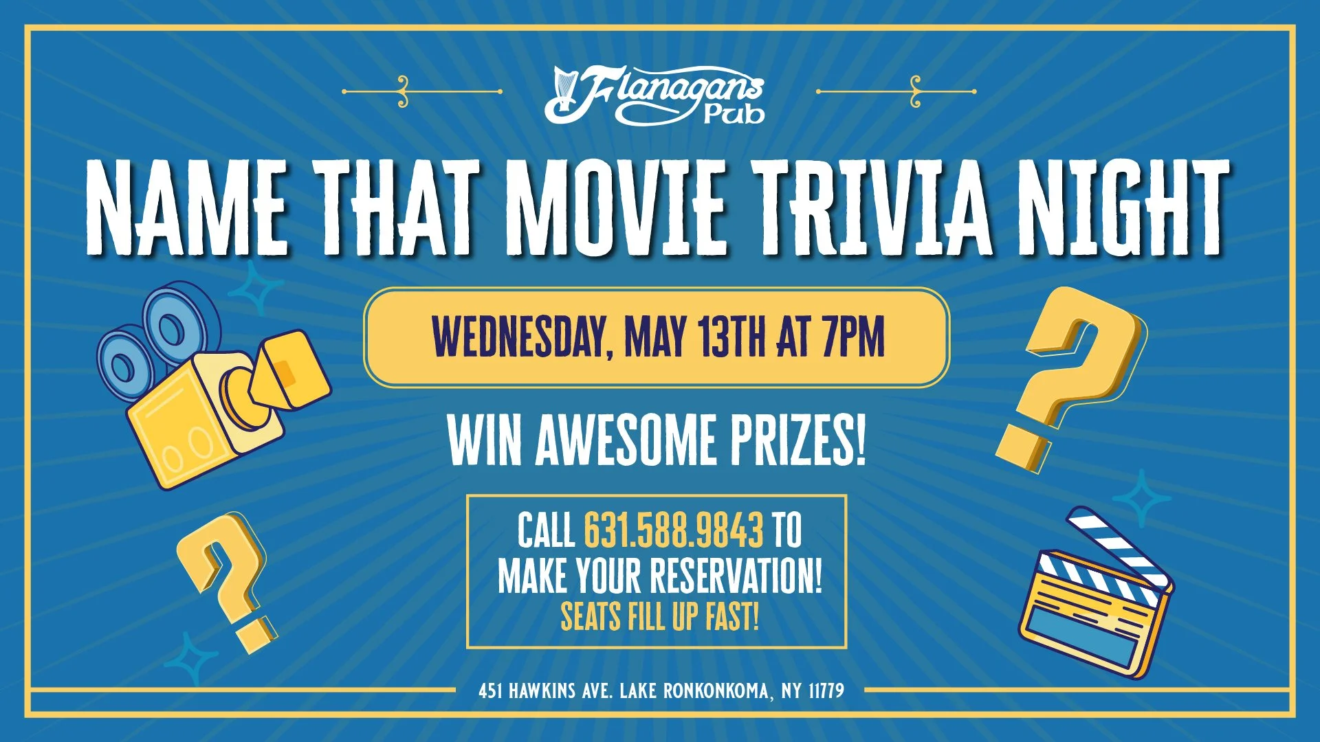 Join Flanagan’s Pub for Name That Movie Trivia Night on Wednesday, May 13th at 7PM!
